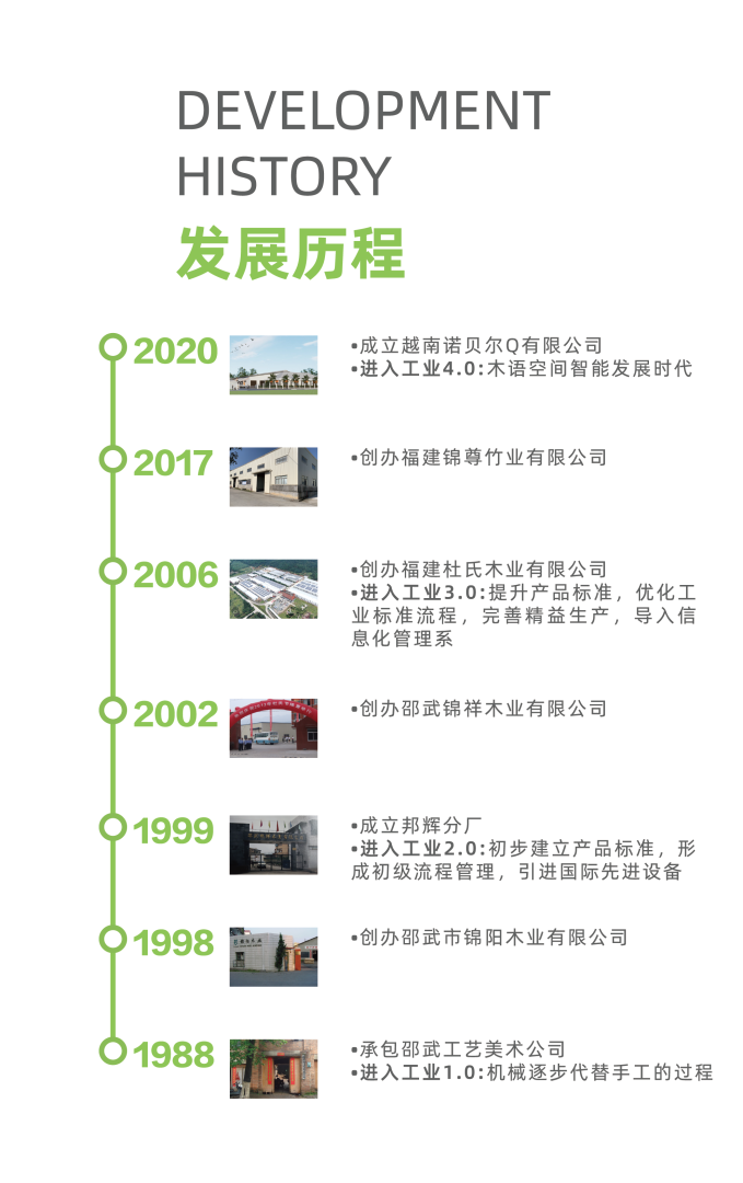 福建杜氏木業(yè)有限公司位于武夷山脈的邵武市,是 現(xiàn)代本木應用創(chuàng)新 的倡導者,是首批國家級林業(yè)產(chǎn)業(yè)化重點龍頭企業(yè)。歷經(jīng)30多年專注于竹木領域的研究生產(chǎn)和制造,客戶已遍布全球。通過規(guī)范化發(fā)展,建立 自主品牌——杜氏木語,是集產(chǎn)品設計、開發(fā)、生產(chǎn)、銷售、服務為一體的整木定制家裝品牌,其產(chǎn)品種類涵蓋 本木櫥柜、本木衣柜、室內(nèi)門、墻板、家具等系列。杜氏木語立足原木,堅持原創(chuàng),在材料應用上,以進口北美、北歐可持續(xù)發(fā)展的胡桃木、櫻桃木、白橡木、樺木、鐵杉等天然木材為主,在設計理念上,融合國際現(xiàn)代家居設計美學,追求現(xiàn)代簡約。品質(zhì)卓越,精益求精,規(guī)范管理。杜氏木語致力于為廣大客戶提供實木領域家居應用整體解決方案,為客戶打造出品質(zhì)優(yōu)、大眾都能買得起的本木產(chǎn)品。讓更多人享受健康、自然、本真的實木家居生活。
